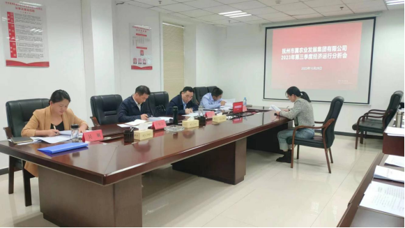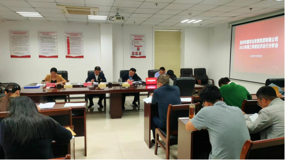 10月26日上午,市农发集团召开2023年第三季度经济运行分析会,会议由党委书记、董事长王柏荣主持并讲话,集团党委副书记、总经理胡建军,党委委员、副总经理吴娓及各子公司、各部门主要负责人出席会议。
